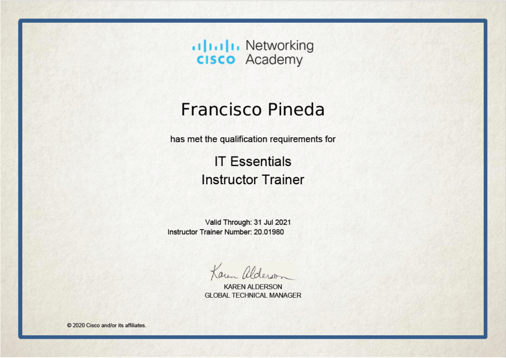 Certificado de CISCO IT Essentials Instructor de Instructores