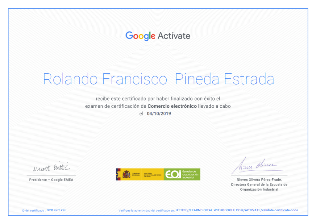 Código de verificación de Certificado: D2R 97C X9L