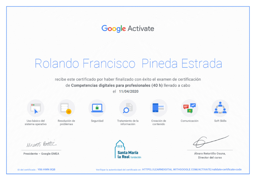 Código de verificación de Certificado: Y86 HWN 8QB
