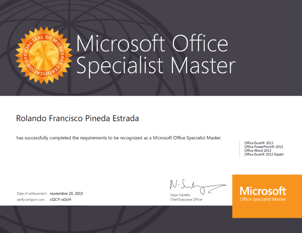 Certificado de Microsoft Office Especialista Master